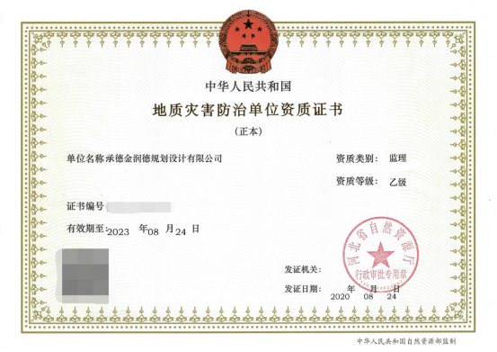 近日,經(jīng)河北省自然資源廳核準(zhǔn),金潤德公司申報的地質(zhì)災(zāi)害治理工程勘查、地質(zhì)災(zāi)害治理工程設(shè)